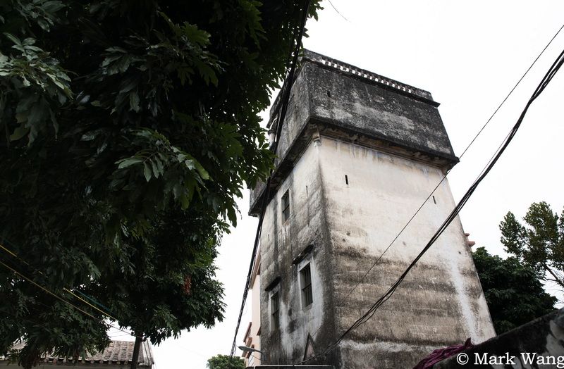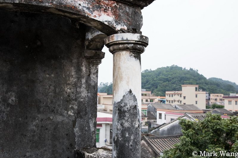 碉楼分三层,内部为木质结构,从内墙残存色彩和雕花,依稀可见西洋建筑的元素。