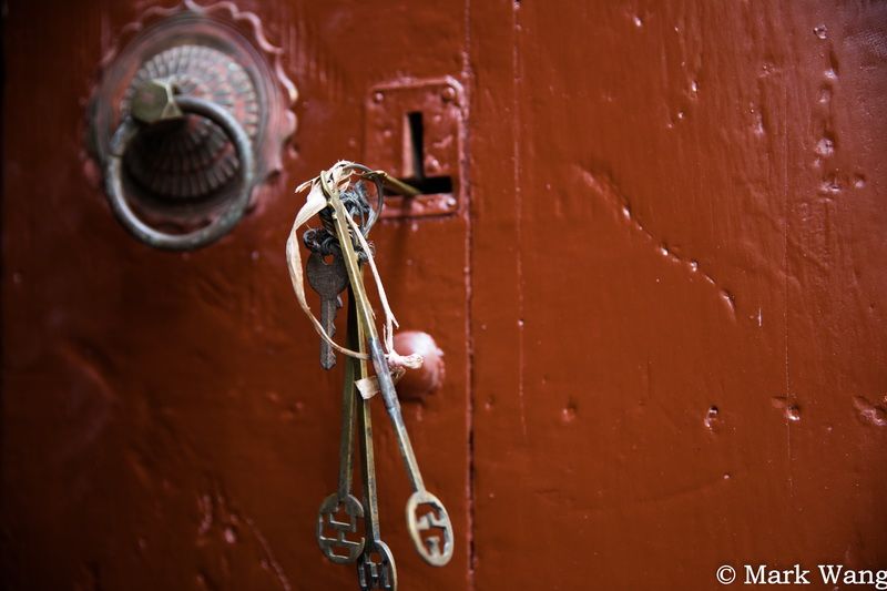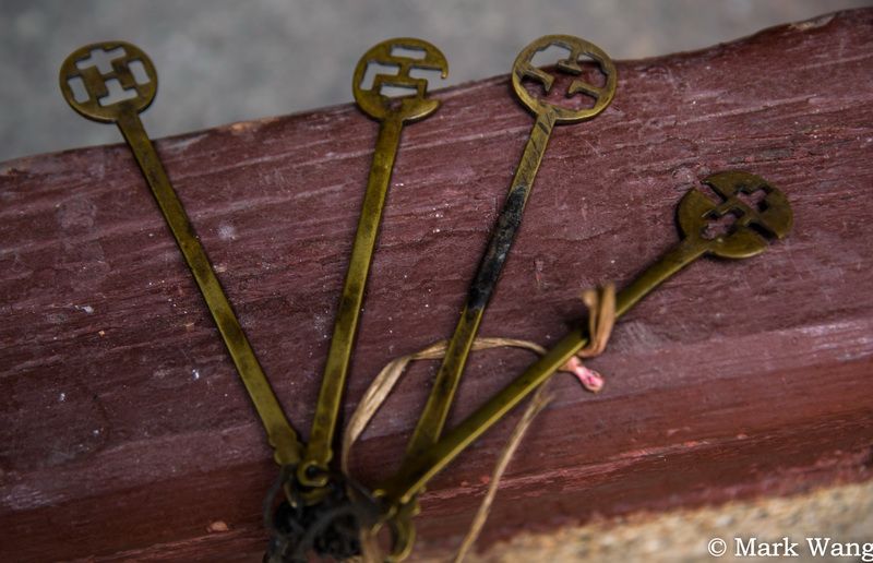 碉楼底侧是起居空间,大门仍保留着当年的铜制门锁。
