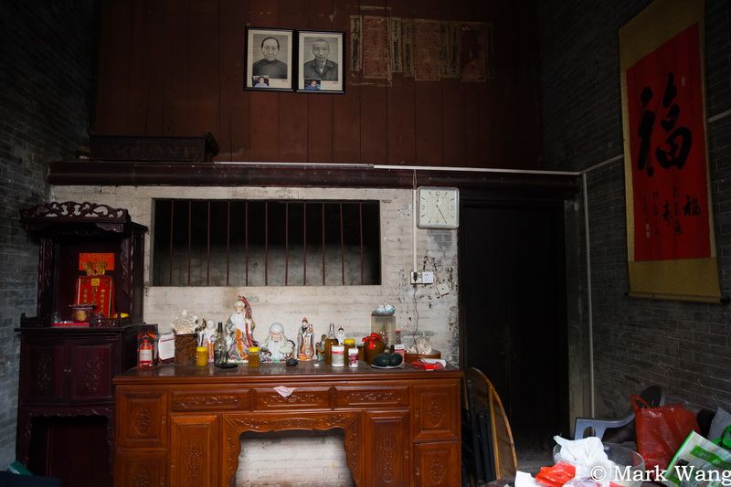 堂屋是传统的格局,空间宽敞,正中供奉着神龛与祖先的画像。